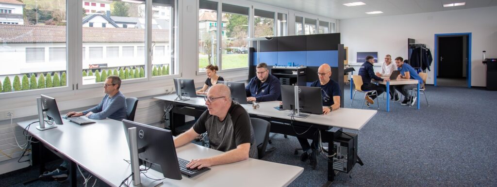 Nous disposons de deux salles spécialement aménagées pour nos formations. Une seule entreprise est présente durant les sessions. De ce fait, l’instructeur peut sans autre dévier du support de cours pour répondre aux questions spécifiques.